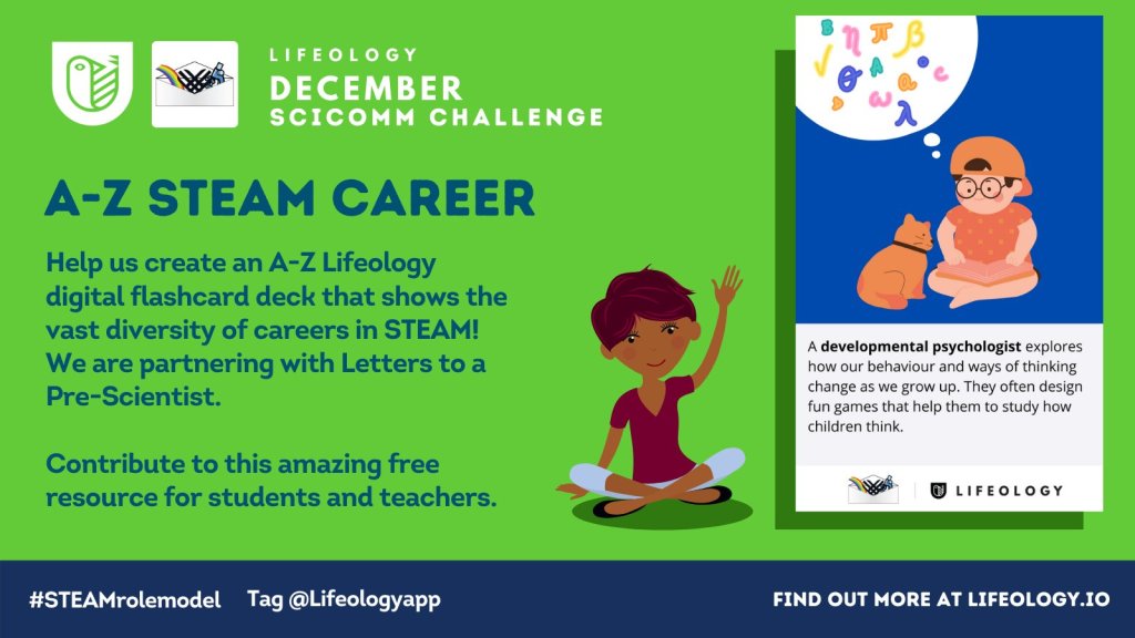 As part of a challenge run by Lifeology and Letters to a Pre-Scientist, I described my research career in a child-friendly way. My submission was selected for a digital flashcard deck teaching children about STEAM careers.